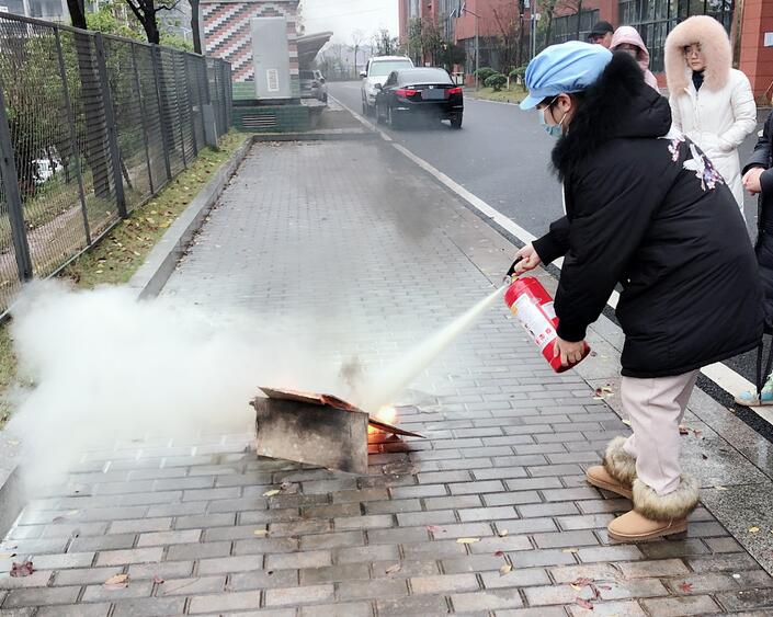 隨后,所有員工在園區(qū)空曠區(qū)域進行了滅火器、滅火毯使用的實際操作,保證每一位員工都會、都能在緊急情況下使用這兩種滅火器材。