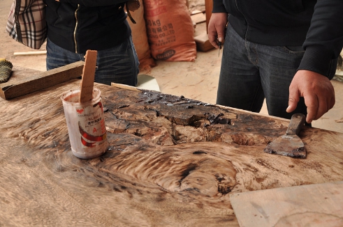 在進行原木修補時,可以選擇適用于冬季的木材快干修補膠,縮短工期。例如牌號為SL3601K和SL3602的快干型透明裂縫修補膠,其初固時間短,光澤度較好、硬度高,填隙能力強,膠接層的尺寸穩(wěn)定性良好,收縮率不高,操作方便; 耐磨、耐老化,防水性能較好,適用于各種木材的修補。