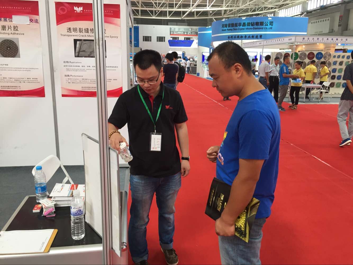 世林膠業(yè)是一家專業(yè)研制和生產各種石材膠和磨具磨料專用膠的廠家,其產品具有強度高、耐黃變、耐老化、收縮小、滲透強等特點,主要應用在臺板復邊、拼花、裂縫修補、磨具磨料上。很多客商對我們世林全透明石材膠系列非常感興趣,完全透明清澈如水的液體適合對各種顏色的石材進行修補,滲透性強的特性又能有效的修復裂縫、小孔洞、砂眼、螞蟻路孔洞等現(xiàn)象。展會上很多客商當場就向我們訂購全透明石材膠,包括我們展會上的石材膠樣品都被客戶買回去做測試。