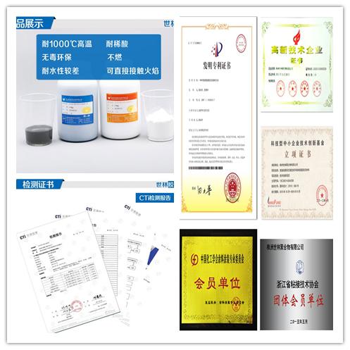 株洲世林膠業(yè)生產(chǎn)的SL8301耐1000℃無(wú)機(jī)高溫膠,它是一種需要高溫固化的雙組份膠粘劑,具有阻燃、耐溫性好、固化后有一定的膠接強(qiáng)度和密封作用,使用方便。主要用于耐高溫部件的密封和膠接(初固),其工作溫度從-40~+1000℃。 短時(shí)可達(dá)+1200℃。不僅用于高溫爐體修補(bǔ)還可以用于高溫陶瓷、燈頭、金屬密封。