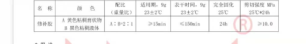 2 配膠 按規(guī)定進行配制,將膠置于潔凈、干燥、無油的容器中,混合均勻至顏色一致。配膠不宜過多,做到隨配隨用。夏季一次配膠量不應超過 500 克。